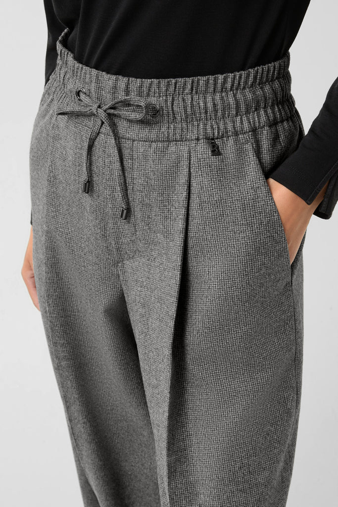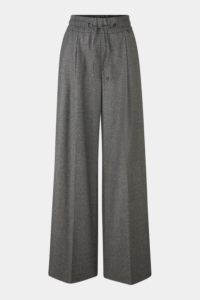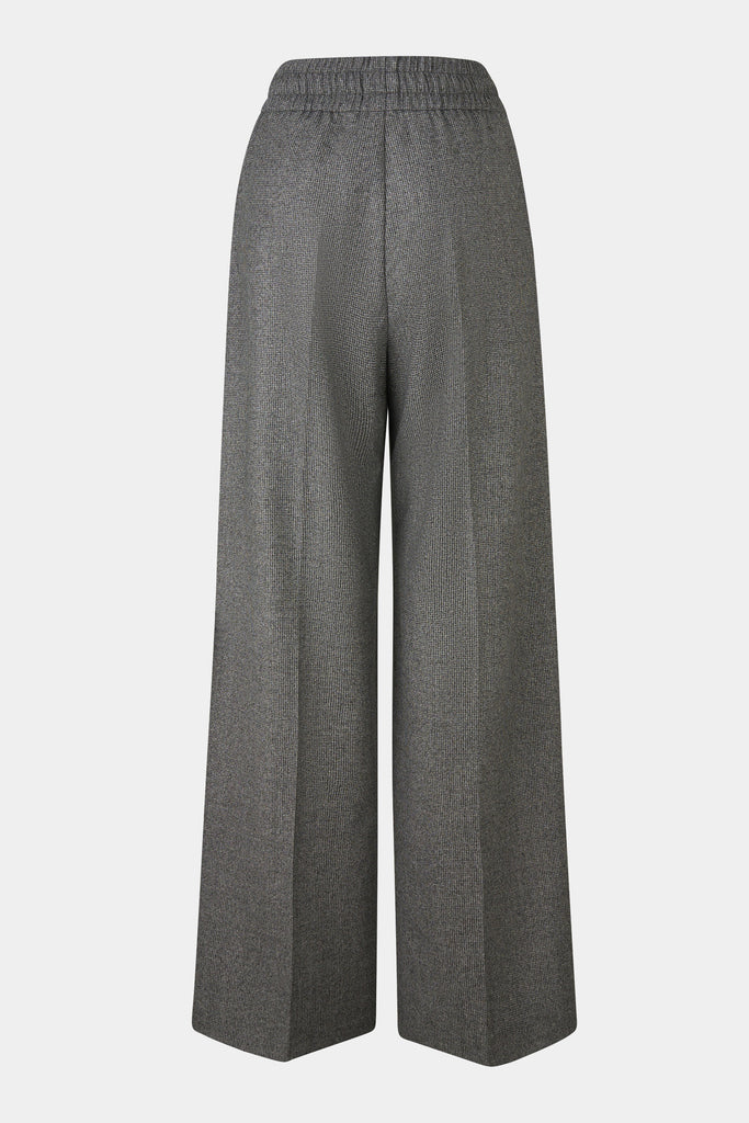 Made from pure new wool in a flannel fabric, the Ella-1 trousers are a comfortable piece, complemented by an elasticated waistband with a drawstring. The waistband and creases add a classic twist. The wide trouser leg and side slit pockets round off the piece.