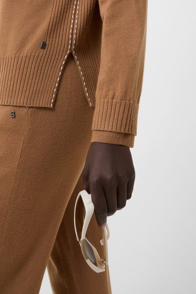 Made from pure virgin wool and with ribbed details, the Lysanne sweater is a comfortable piece, complemented by raglan sleeves with double cuffs and side slits. Contrasting stitching and the metallized signé add an accentuated finish.