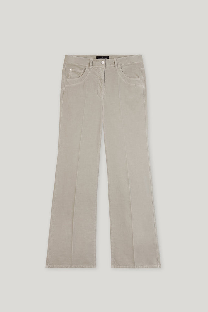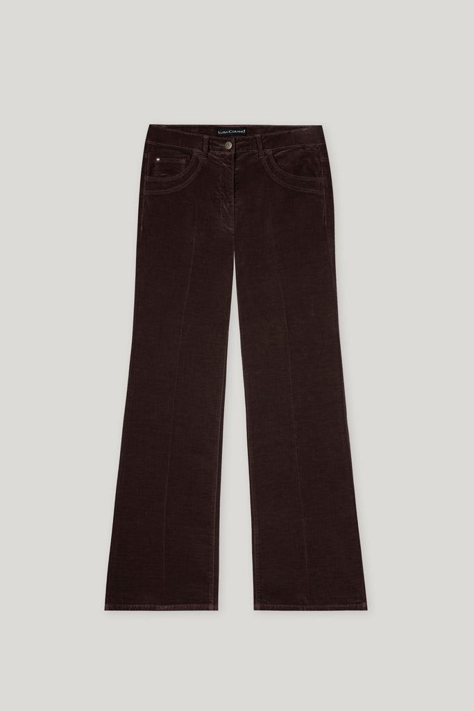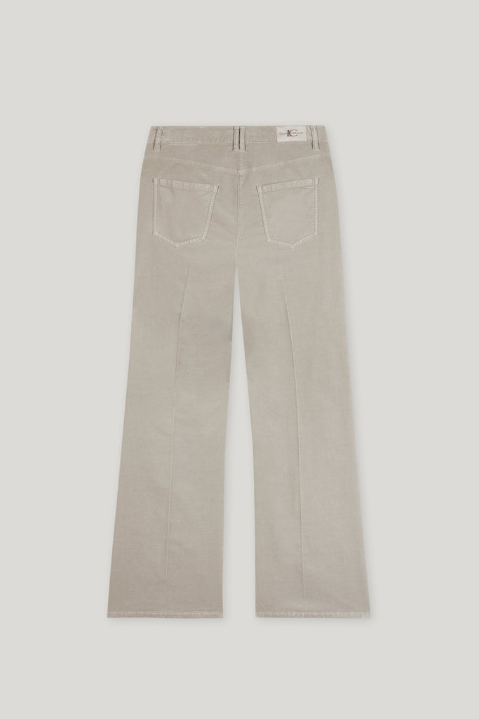 Bootcut velvet pants. Available in Oyster and Espresso