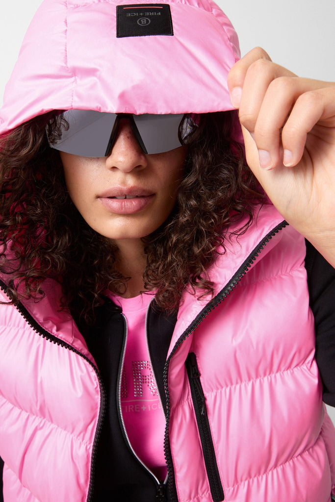 The Naima quilted gilet is a comfortable piece with warming tech padding, elasticated cuffs and an adjustable hem, complemented by a drawstring hood and zip pockets and water repellent technical fabric. Modern signature details give the gilet an iconic finish.