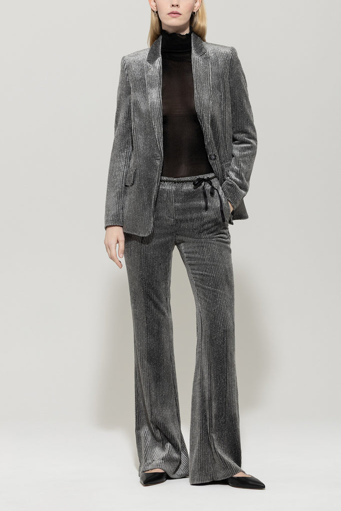 Glitter flared corduroy pants. Shown with matching Cord Blazer with Glitter.