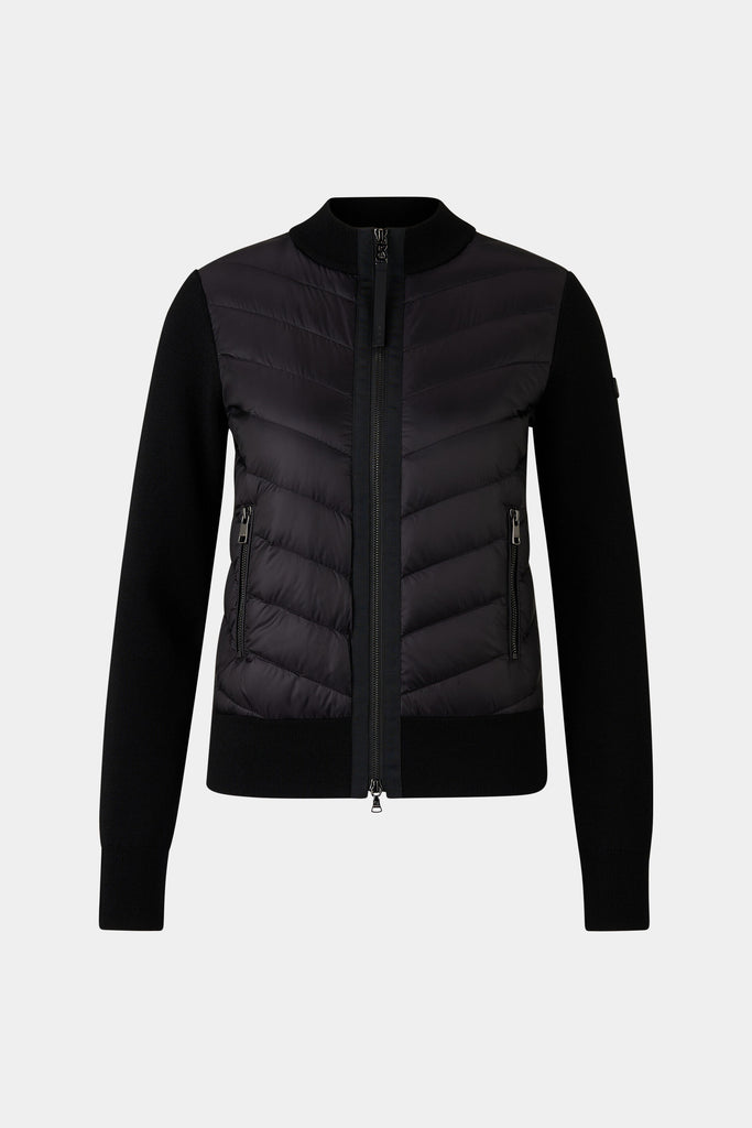 The Zilly-D1 knit jacket features a pure wool design with a quilted nylon front and light duck down padding, complemented by a ribbed stand-up collar and matching cuffs on the sleeves and hem. A two-way zip and side pockets round off the piece perfectly.